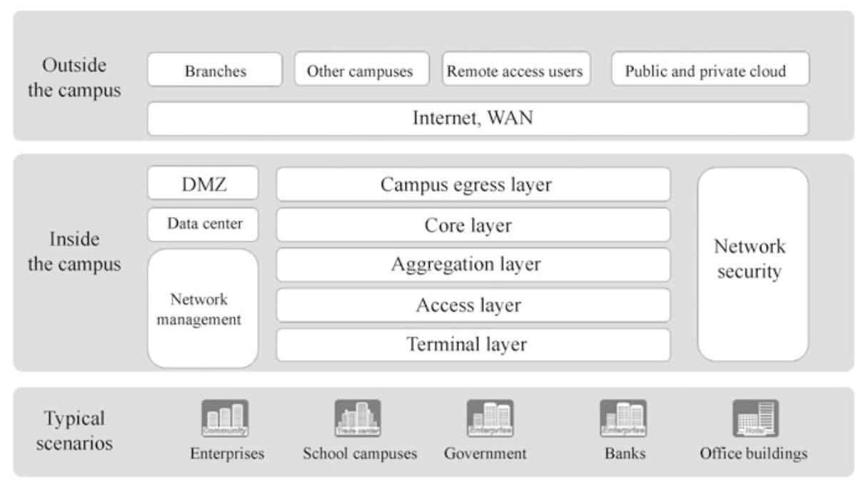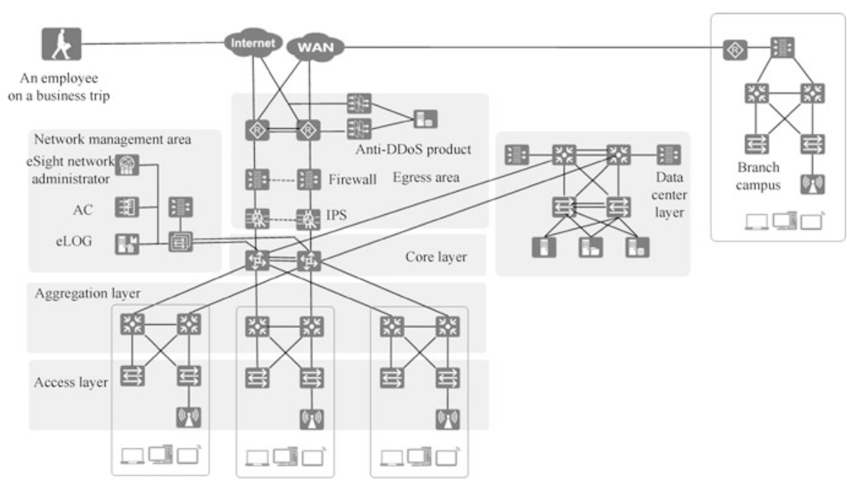 Dưới đây là kiến trúc chính của một mô hình mạng campus :