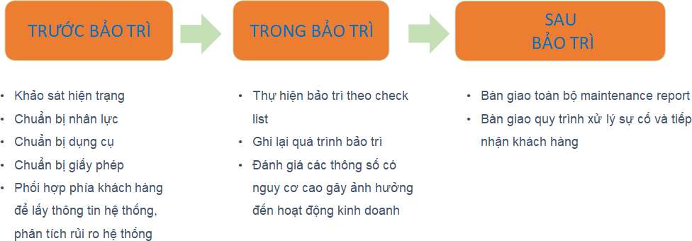 Để đảm bảo quá trình bảo trì giảm thiểu tối đa các rủi ro ngoài mong muốn, cần lên kế hoạch, chuẩn bị tốt khâu tiền bảo trì cũng như các phương án ứng cứu kịp thời trong quá trình thực hiện công tác bảo trì cũng như sau khi bảo trì.
